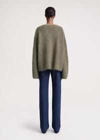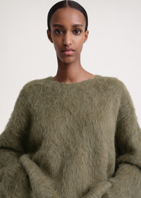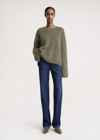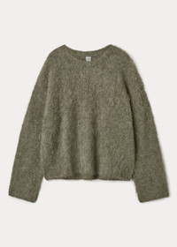 Signature TOTEME sweater knitted with light and hairy alpaca-blend yarns. It’s shaped to a relaxed, boxy silhouette with a ribbed round neck, dropped shoulders and extra-long sleeves. Style it with denim for an effortless look. Details & Fit - Marsh - 78% Alpaca, 19% polyamide, 3% elastane - Cold hand wash - Style number 234-WRTWTP220-YA0013 - Designed for an oversized fit, go down a size if you prefer a neater look - The model is 177cm/59 tall and wears a size XS/S