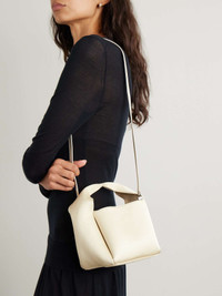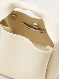 EDITORS'NOTES TOTEME keeps things minimal and refined - its pieces are perfect for building a timeless wardrobe. Crafted in Italy from satin that's woven with 54% certified organic cotton, this tote has a softly structured bucket-inspired shape and a pinched top handle. The interior is spacious enough for your phone with a slip pocket for your cards. Lower-Impact Materials. This product is made using at least 50% lower-impact materials or ingredients. Find out more about our NET SUSTAIN criteria here. SIZE & FIT This item’s measurements are: - Handle Drop: 7cm / 2.8in - Depth: 13cm / 5.1in - Height: 15cm / 5.9in - Width: 15cm / 5.9in DETAILS & CARE - Ecru organic cotton-blend satin - Top handle, detachable shoulder strap - Internal slip pocket - Fully lined - Clasp fastening at open top