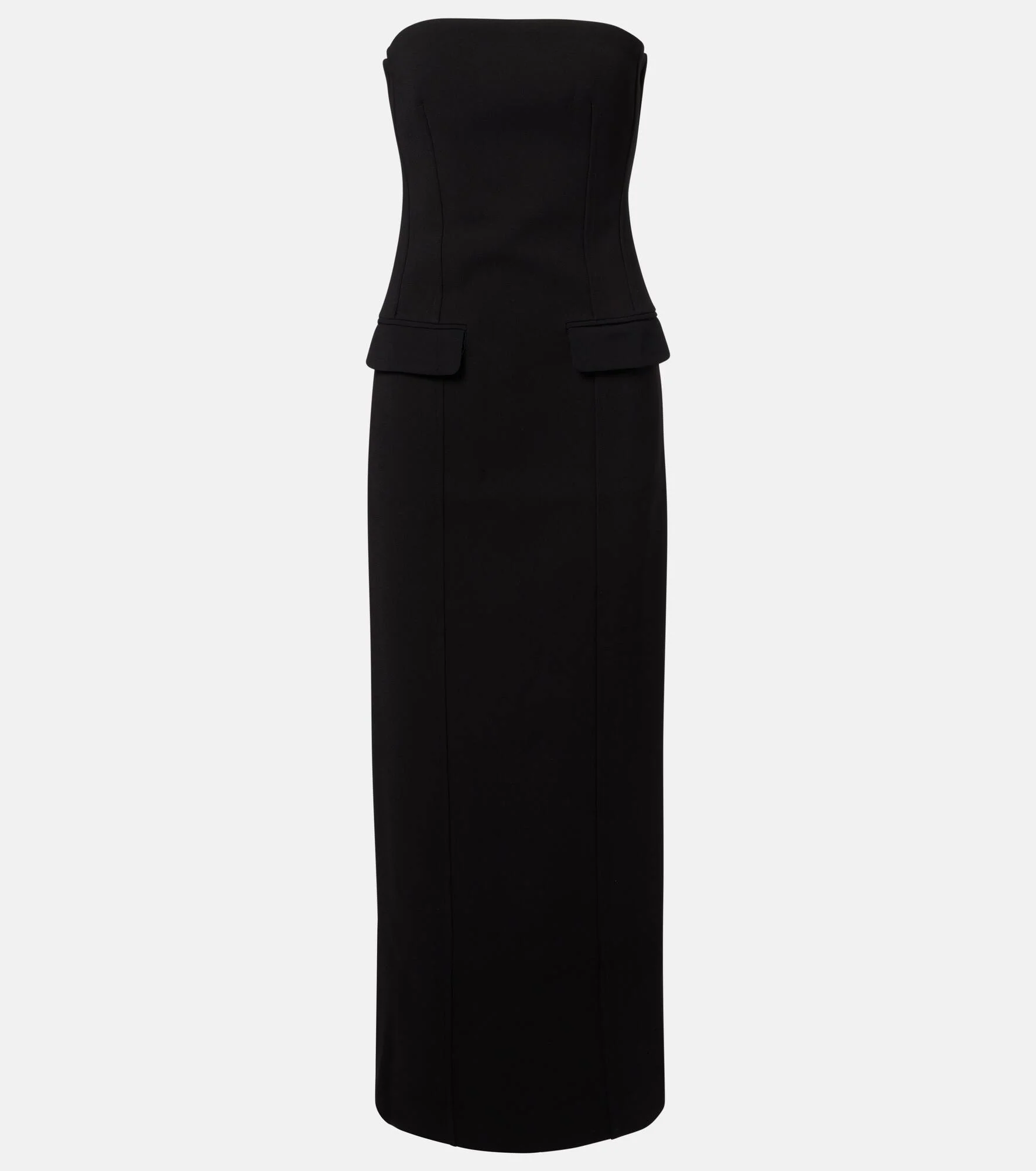 Define your dress code with styles from Toteme, a Stockholm-based brand dedicated to creating a modern uniform. The bustier dress is fully lined and features flap pockets, a zipped back, and a long vent. Product Details - Material: 100% polyester - Care instructions: dry clean - Made in China - Designer color name: Black - Item color: black - Hardware color: silver - Lining: 100% polyester - Closure: zipped back - Built-in bustier - Pockets: flap pockets - Long vent - Fully lined - Item number: P01102011 Size & Fit - Fits small to size - we recommend trying one size larger - Strapless - Fitted - Non-stretchy fabric - The model seen in the picture is 178cm-5'10" and wearing a size DE 36