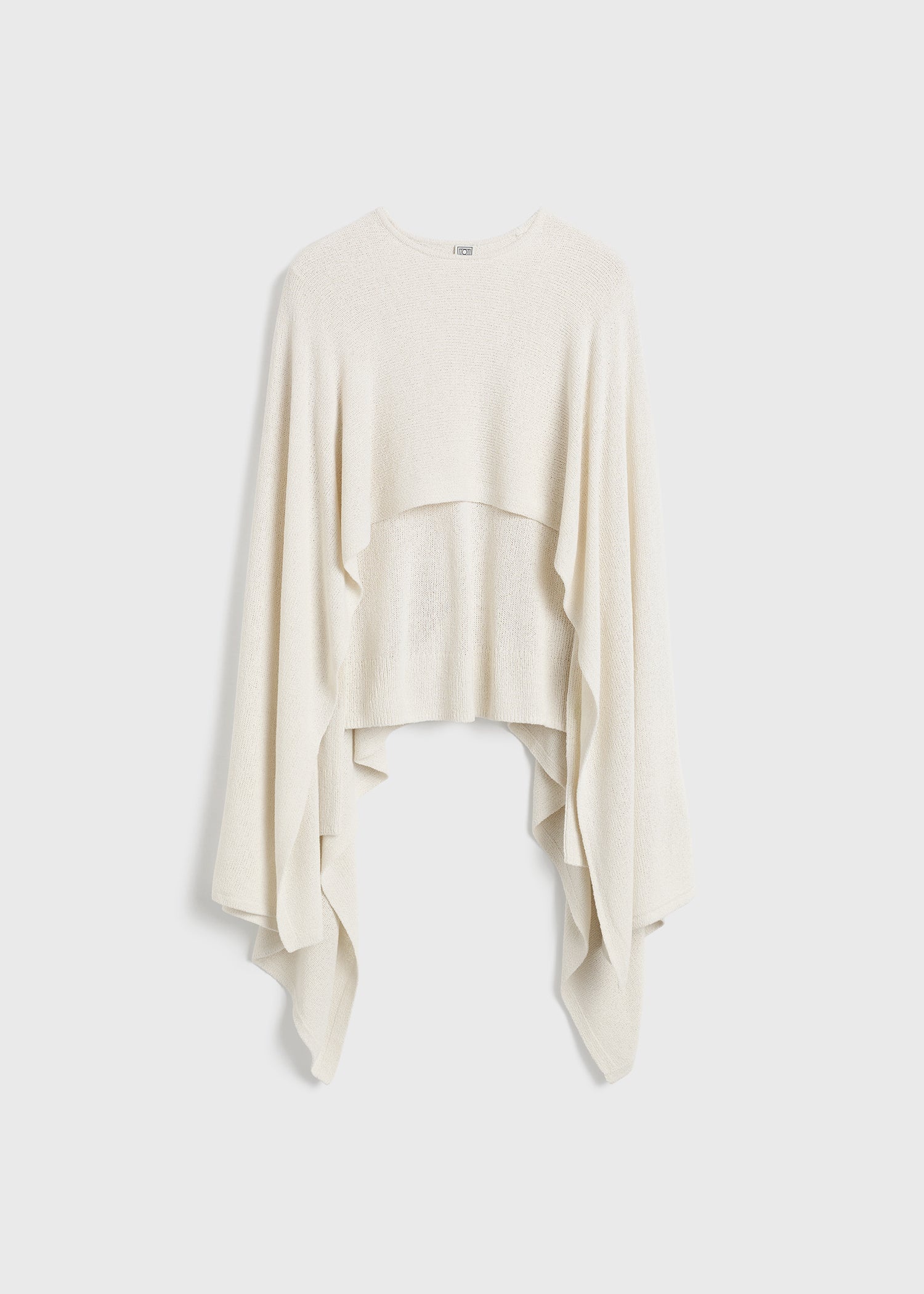 Long-sleeved TOTEME sweater featuring a matching cape attached at the neck. It is knitted from voluminous boucle made from dense silk fibers with a loose slim silhouette. Let it drape over a skirt for a day event. Details & Fit - Ecru - Attached cape - 100% silk - Cool hand wash - Style number 252-WRT0505-YA0156 - The model is 180cm/5'11 tall and wears a size S - True to size, slim fit