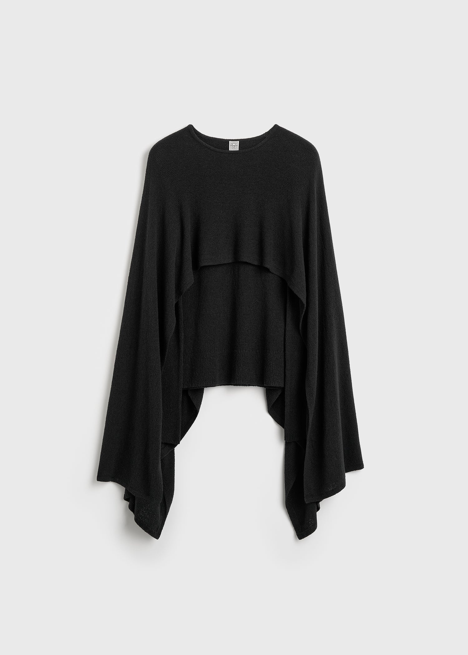 Long-sleeved TOTEME sweater featuring a matching cape attached at the neck. It is knitted from voluminous boucle made from dense silk fibers with a loose slim silhouette. Let it drape over a skirt for a day event. Details & Fit - Black - Attached cape - 100% silk - Cool hand wash - Style number 252-WRT0505-YA0156 - The model is 178cm/510 tall and wears a size S - True to size, slim fit
