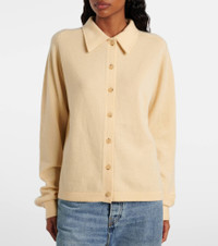 Define your dress code with styles from Toteme, a Stockholm-based brand dedicated to creating a modern uniform. Made with pure cashmere, this cardigan has a ribbed hem and is finished with a polo collar. Product Details - Material: 100% cashmere - Care instructions: hand wash - Made in China - Designer color name: Champagne - Item color: beige - Collar: polo collar - Closure: buttoned placket - Cuff: one button - Hem: ribbed - Item number: P01102013 Size & Fit - True to size - Designed for a loose fit - Stretchy fabric - Falls to the hip - The model seen in the picture is 178cm-5'10" and wearing a size XS