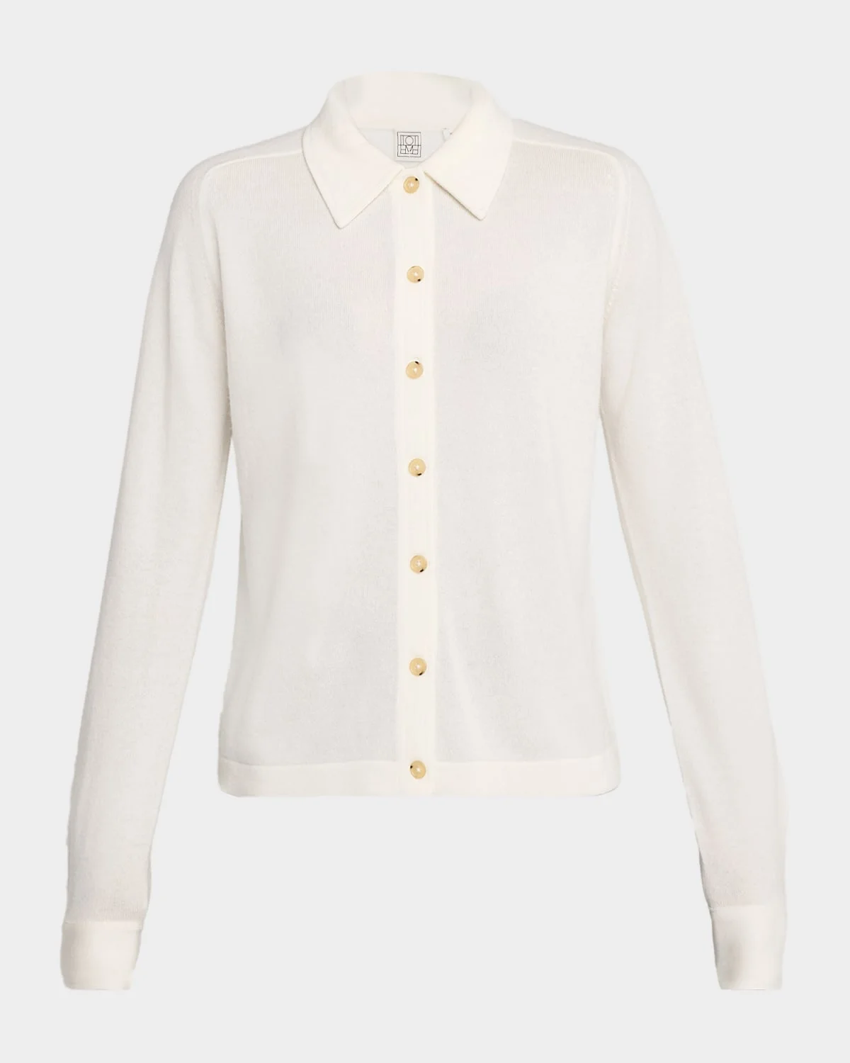 Toteme knit cardigan features raglan sleeves and a spongy cashmere finish Point collar Button closure Long sleeves Ribbed trim Hip length Relaxed fit Cashmere Imported