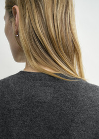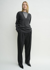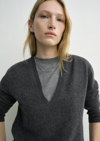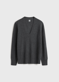Designer's note: "This cashmere knit has a relaxed, elongated silhouette and a deep V-neckline that reveals a hint of skin. Wear it as a fine, soft layer on chilly summer evenings or style it over a white crew-neck tee as a considered contrast.” Details & Fit - Charcoal - 100% cashmere - Cool hand wash - Style number 252-WRT0521-YA0016 - The model is 180cm/5'11 tall and wears a size S - Oversized fit, long silhouette