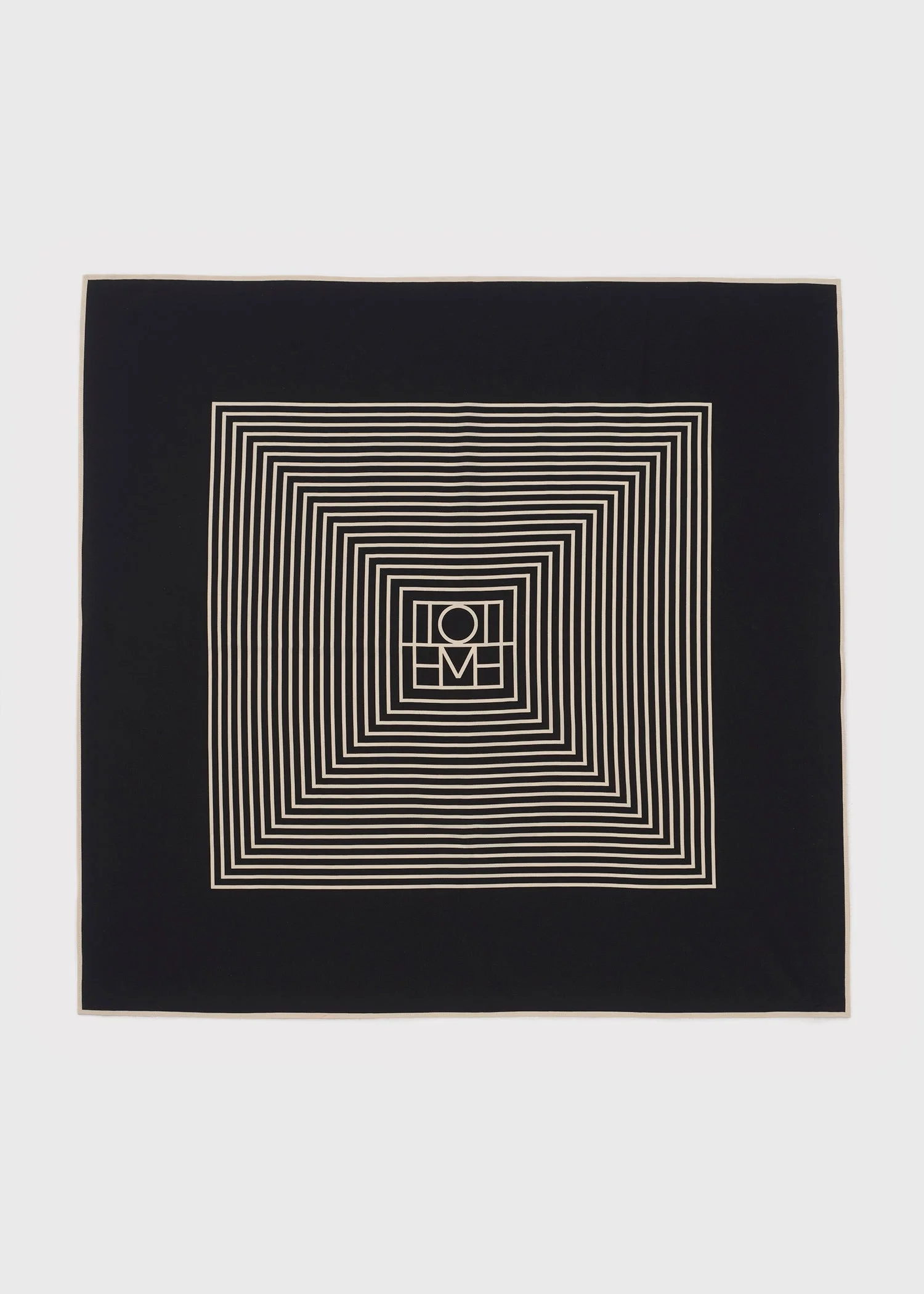 Classic TOTEME silk scarf cut to a square shape measuring 80x80cm and printed with a centered, striped monogram in black and creme . Drape it over your shoulders or fold it neatly around your neck. Details & Fit - Black - 100% Silk - Cool hand wash - Style number 211-853-801 - Length 80cm/31.5 - Width 80cm/31.5
