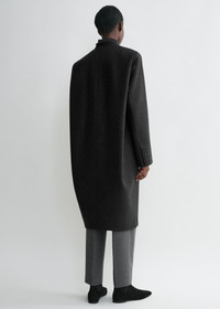 TOTEME coat constructed with generous back pleats that create extra volume for a sculptural effect. It is made from structured wool-blend felt including recycled fibers and finished with a concealed button front and flap pockets. Make it part of a monochromatic winter look. Details & Fit - Charcoal - Curved back, shoulder pleats - Concealed button placket, buttoned cuffs - Flap pockets, internal pocket - 70% wool recycled, 25% polyamide, 5% other fibers; lining: 100% viscose - Dry clean - Style number 251-WRO4312-FB0005 - The model is 178cm/510 tall and wears a size 36 - True to size, rounded silhouette