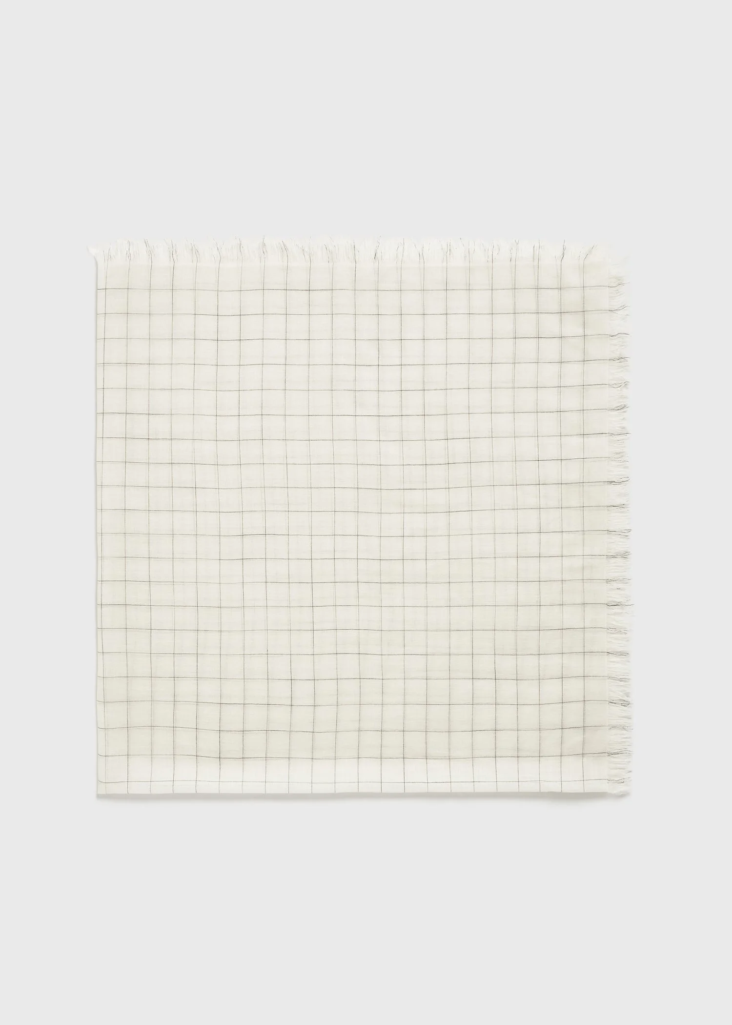 Designer’s note: “This cozy scarf from the Garderob curation features the new TOTEME Grid, a fine windowpane check inspired by the venue of our debut runway show, the historical Salle des Tirages in Paris. It's made in Italy from featherweight wool that’s frayed along the edges for texture, making it the perfect travel accessory.” Details & Fit - Ecru/black - Ecru and black windowpane check - Frayed edges - 100% wool RWS - Cool hand wash - Style number 252-WSC0126-FB0457 - Length 140cm/55" Width 140cm/55"