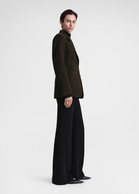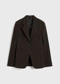 TOTEME blazer with a cinched waistline and a bottom button that's designed to stay open for a contoured silhouette. It's made from cotton moleskin with three functional pockets and has partial lining. Wear it as a suit with coordinating trousers. Details & Fit - Espresso brown - Button front, bottom button designed to stay open - Three pockets - Partial black satin lining - 70% Cotton, 30% recycled cotton; lining: 100% viscose - Dry clean - Style number 241-WRZ1048-FB0062 - The model is 180cm/5'11" tall and wears a size 36 - True to size, slim fit