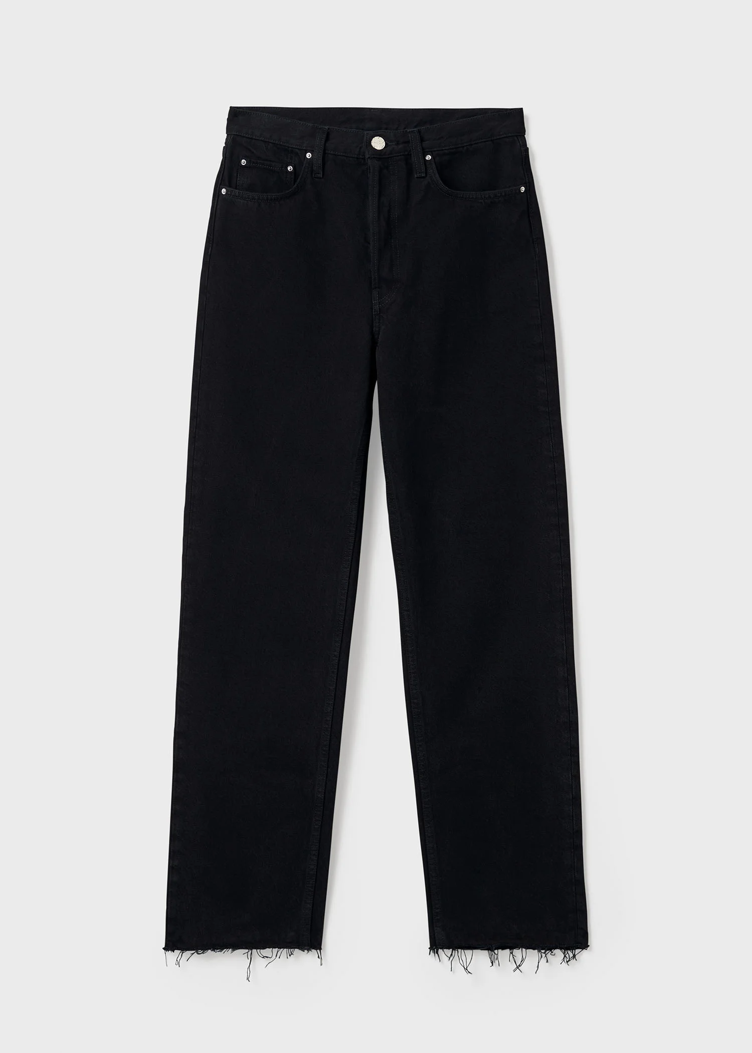 TOTEME jeans cut to a classic straight silhouette with slim thighs and cropped legs finished with raw edges for texture. They're made in Italy from rigid organic-cotton denim that will mold to fit you perfectly over time and feature a mid-to-high waistline fastening with a concealed button fly. Wear them everyday with flats or kitten heels. Details & Fit - Black - Button fly, silver-tone hardware - Belt loops, five pockets - Embroidered monogram - 100% Organic cotton - 30°C Machine wash - Style number 221-235-739 - Mid-to-high waist, cropped straight legs with slim thighs - The model is 178cm/510 tall and wears a size 26/34 - True to size