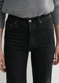 A full-length evolution of our Classic cut denim, made in Italy from 100% organic cotton denim and finished with a button-fly. Choose your normal inseam and wear with heels to highlight the elongated proportions, or opt for a shorter inseam to get the look of Classic cut denim with a finished hem. Details & Fit - Faded black - Button fly, silver-tone hardware - Five pockets, belt loops, finished hem - Leather patch - 100% organic cotton - 30°C machine wash - 234-2036-744 - Model is 178cm/510 tall and wears a size 26/34 - Mid-to-high waist intended to sit at the waist, straight leg, full length - True to size