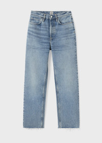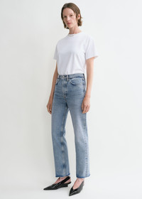 TOTEME jeans cut to a classic straight silhouette with slim thighs and cropped legs finished with raw edges for texture. They're made in Italy from rigid organic-cotton denim that will mold to fit you perfectly over time and feature a mid-to-high waistline fastening with a concealed button fly. Wear them everyday with flats or kitten heels. Details & Fit - Worn blue - Button fly, silver-tone hardware - Belt loops, five pockets - Monogram leather patch - 100% Organic cotton - 30°C Machine wash - Style number 222-235-741 - Mid-to-high waist, cropped straight legs with slim thighs - The model is 178cm/510 tall and wears a size 27/34 - True to size