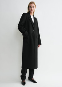This classic TOTEME coat embodies the considered way of dressing characterizing our Pre Spring 25 collection. It is tailored from lightweight wool double with a minimalist single-breasted, one-button front and flap pockets, then left unlined for a natural drape. Use it to infuse an effortless air into mid-week looks. Details & Fit - Black - Single front button, buttoned cuffs - Flap pockets - Partial lining - 100% wool RWS; lining: 100% viscose - Dry clean - Style number 251-WRO4725-FB0006 - The model is 179cm/5'10" tall and wears a size 36 - True to size, relaxed fit
