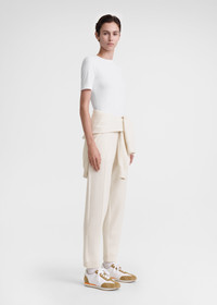 Short-sleeved TOTEME T-shirt made from ribbed cotton jersey with a hint of elastane for a comfortable slim fit and embroidered with a tonal monogram for discreet branding. Wear it throughout the year under sweaters and overshirts. Details & Fit - White - Embroidered monogram - 95% organic cotton, 5% elastane - 30°C Machine wash - Style number 241-WRT1459-FB0094 - The model is 175cm/59 tall and wears a size S - True to size