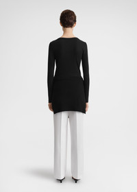 Long-sleeved TOTEME top outlined with a wide scoop neckline and a slim silhouette. It's made from ribbed organic cotton jersey blended with a touch of elastane for a comfortable, body-hugging fit. Wear it on its own or as a base layer to transeasonal looks. Details & Fit - Black - 95% Organic cotton, 5% elastane - 30°C Machine wash - Style number 241-WRT1060-FB0094 - The model is 179cm/510 tall and wears a size S - True to size, slim fit