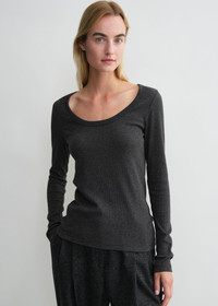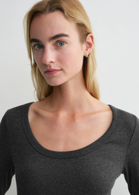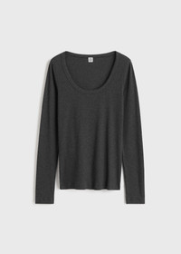 Everyday TOTEME long-sleeve top outlined with a wide scoop neckline and slim silhouette. It is made from ribbed organic cotton jersey blended with a touch of elastane for a comfortable, body-hugging fit. Wear it on its own or as a base layer to trans-seasonal looks. Details & Fit - Charcoal - 93% cotton organic, 7% elastane - 30°C machine wash - Style number 251-WRT1060-FB0246 - True to size, slim fit - The model is 179cm/5'10" tall and wears a size S