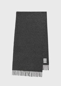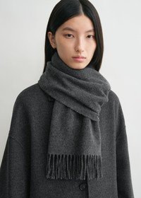Classic TOTEME scarf made in Italy from responsibly sourced wool. It has a rectangular shape measuring 220x50cm with fringed edges and a monogram label. Wear it throughout winter over your favorite coat or jacket. Details & Fit - Dark grey melange - 100% Wool - Dry clean - Style number 214-881-807 - Length 220cm/87 - Width 50cm/20