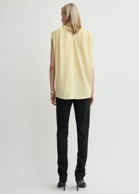 Cocoon-style top crafted from fluid twill for an impeccable drape that flows into the back to mimic a cape. Style with trousers for evening occasions. Details & Fit - Champagne - 60% viscose, 40% wool - Dry clean - Style number 254-WRT0608-FB0477 - The model is 180cm/5'11 tall and wears a size 36 - Architectural fit