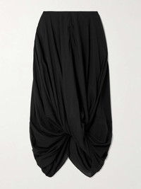 EDITORS'NOTES TOTEME's minimalist clothing is designed with artful, contemporary shapes at the forefront. This maxi skirt is made from Lyocell and organic cotton-blend voile that's draped and twisted at the hem, creating a beautiful texture and asymmetry. Wear yours with a simple T-shirt and sandals. SIZE & FIT TOTEME follows its own size guide, please refer to below: - DK 32 = UK 4/ US 0/ IT 36 - DK 34 = UK 6/ US 2/ IT 38 - DK 36 = UK 8/ US 4/ IT 40 - DK 38 = UK 10/ US 6/ IT 42 - DK 40 = UK 12/ US 8/ IT 44 - DK 42 = UK 14/ US 10/ IT 46 - Fits true to size, take your normal size - Ankle length, designed to be worn at the hip - Lightweight, non-stretchy fabric - Model is 180cm/ 5'11" and is wearing a DK 36 - Bust: 80cm/ 31.5" - Waist: 65cm/ 25.5" - Hip: 89cm/ 35" DETAILS & CARE - Black Lyocell and organic cotton-blend voile - Concealed hook and zip fastening at side - 60% Lyocell, 40% organic cotton