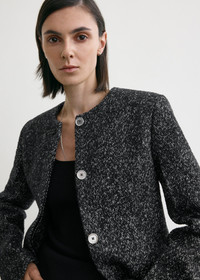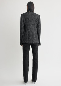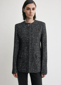 Suit jacket echoing our focus on curated tailoring. Made from black and white wool-blend tweed, it has a slim silhouette cinched at the waist with long darts and is finished with a collarless round neck, flap pockets and full satin lining. The partially concealed placket fastens with elegant silver-tone buttons. Details & Fit - Black/white - Silver-tone buttons - Flap pockets - Satin lining - 74% wool, 20% polyester, 6% polyamide; lining: 100% viscose - Dry clean - Style number 254-WRO0145-FB0507 - The model is 180cm/5'11 tall and wears a size 36 - Contoured fit