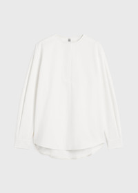 This sharp shirt channels TOTEME's uncomplicated Scandinavian look. It's made from mid-weight organic-cotton twill to a relaxed silhouette with a buttoned quarter placket inspired by the fly in classic trousers. Wear it for anything from meetings to casual outings. Details & Fit - White - Concealed quarter placket - Buttoned cuffs - Back yoke, box pleat - 100% cotton organic - 30°C Machine wash - Style number 242-WRT1434-FB0103 - The model is 179cm/5'10" tall and wears a size 36 - Relaxed fit, true to size