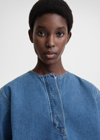 This sharp shirt channels TOTEME's uncomplicated Scandinavian look. It's made from organic-cotton denim to a relaxed silhouette with a buttoned quarter placket inspired by the fly in classic trousers. Wear it with the matching jeans for a directional look. Details & Fit - Vibrant blue - Concealed quarter placket - Buttoned cuffs - Back yoke, box pleat - 100% cotton organic - 30°C Machine wash - Style number 242-WRT1746-FB0190 - The model is 179cm/5'10" tall and wears a size 36 - Relaxed fit, true to size