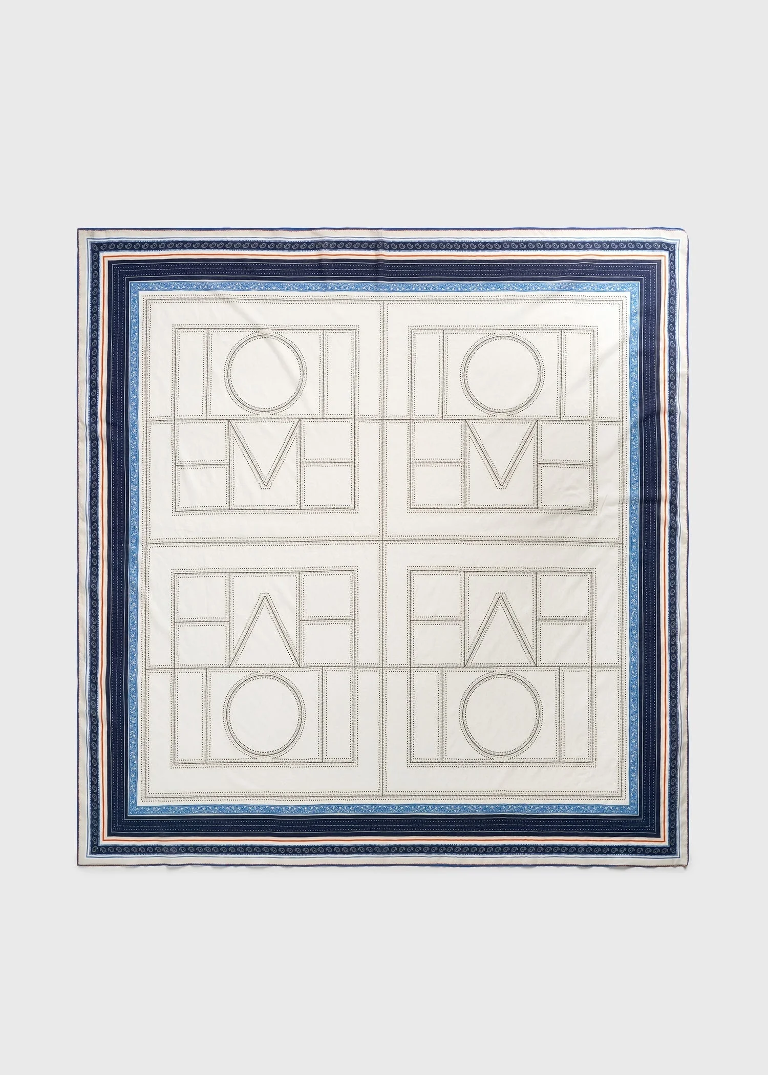 Designer's note: "This TOTEME Garderob sarong is inspired by a collector’s piece – a vintage scarf evoking an artistic, bohemian spirit. Crafted from feather-light cotton voile, it’s printed with a new monogram surrounded by eclectic motifs, from classic paisleys to ikat-inspired patterns. For versatile styling, wrap it around the legs or tie it into a halterneck top." Details & Fit - Ecru/navy - Ecru, navy, cronflower-blue and orange monogram print - Featherlight voile - 50% cotton organic, 50% lyocell - Cool hand wash - Style number 253-WSC0106-FB0239 - Length 140cm/55" - Width 140cm/55"