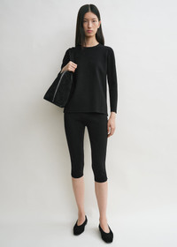 TOTEME capri trousers knitted from stretch, compact jersey for a figure-hugging fit. They have an elasticated waistband followed by knee-length, slim legs with intricate tubular side stitching and small hem slits. Team them with a top and flats to run errands. Details & Fit - Black - Elasticated waistband - Side-hem slits - 53% viscose, 45% polyamide recycled, 2% elastane - Cool hand wash - Style number 252-WRB0276-YA0187 - The model is 180cm/5'11 tall and wears a size S - True to size, slim fit