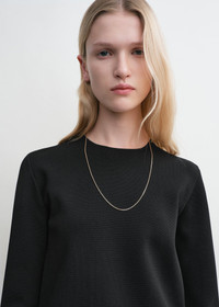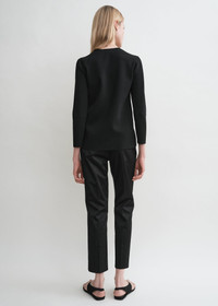 TOTEME top knitted from stretch, compact jersey for a flattering fit. It has a crew neckline and a slim silhouette with cropped long sleeves, making it a versatile styling piece. Team it with trousers and sandals to meet a friend for coffee. Details & Fit - Black - 53% viscose, 45% polyamide recycled, 2% elastane - Cool hand wash - Style number 252-WRT0501-YA0187 - The model is 178cm/510 tall and wears a size S - True to size, regular fit