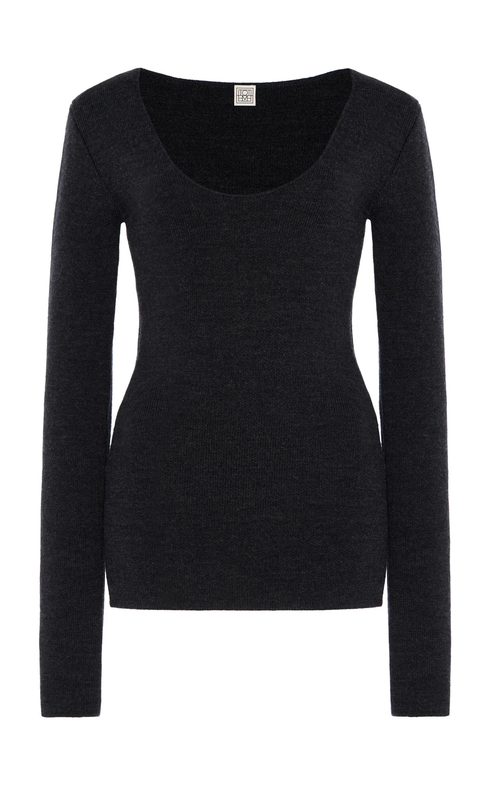With its signature clean lines and minimalist style, Stockholm-based Toteme is the quintessential Scandi-cool. Elin Kling designs each collection as a modern uniform, looking to vintage pieces for inspiration and giving its cult following a dress code for every day. This long-sleeve top is knitted from compact merino-blend jersey for a flattering fit. It has a slim silhouette with a scoop neckline and a hem that hits below the hip. PRODUCT DETAILS - Fall '25 - Slip on - Composition: 93% RWS wool, 3% polyamide - Designer color: Charcoal Melange - Dry clean - Imported