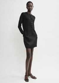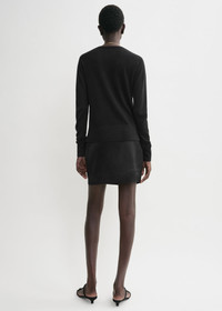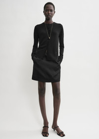 TOTEME mini skirt made from heavyweight, double-bonded satin with a light hay reverse for contrast. It has a subtle A-line silhouette accented with waist darts and a topstitched hemline, then is complete with side slip pockets and a concealed back zipper. Wear it with a shirt or cardigan as part of an urban summer look. Details & Fit - Black - Side slip pockets - Concealed back zipper - 100% viscose - Dry clean - Style number243-WRB0204-FB0209 - The model is 180cm/511 tall and wears a size 36 - True to size