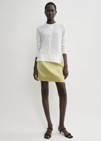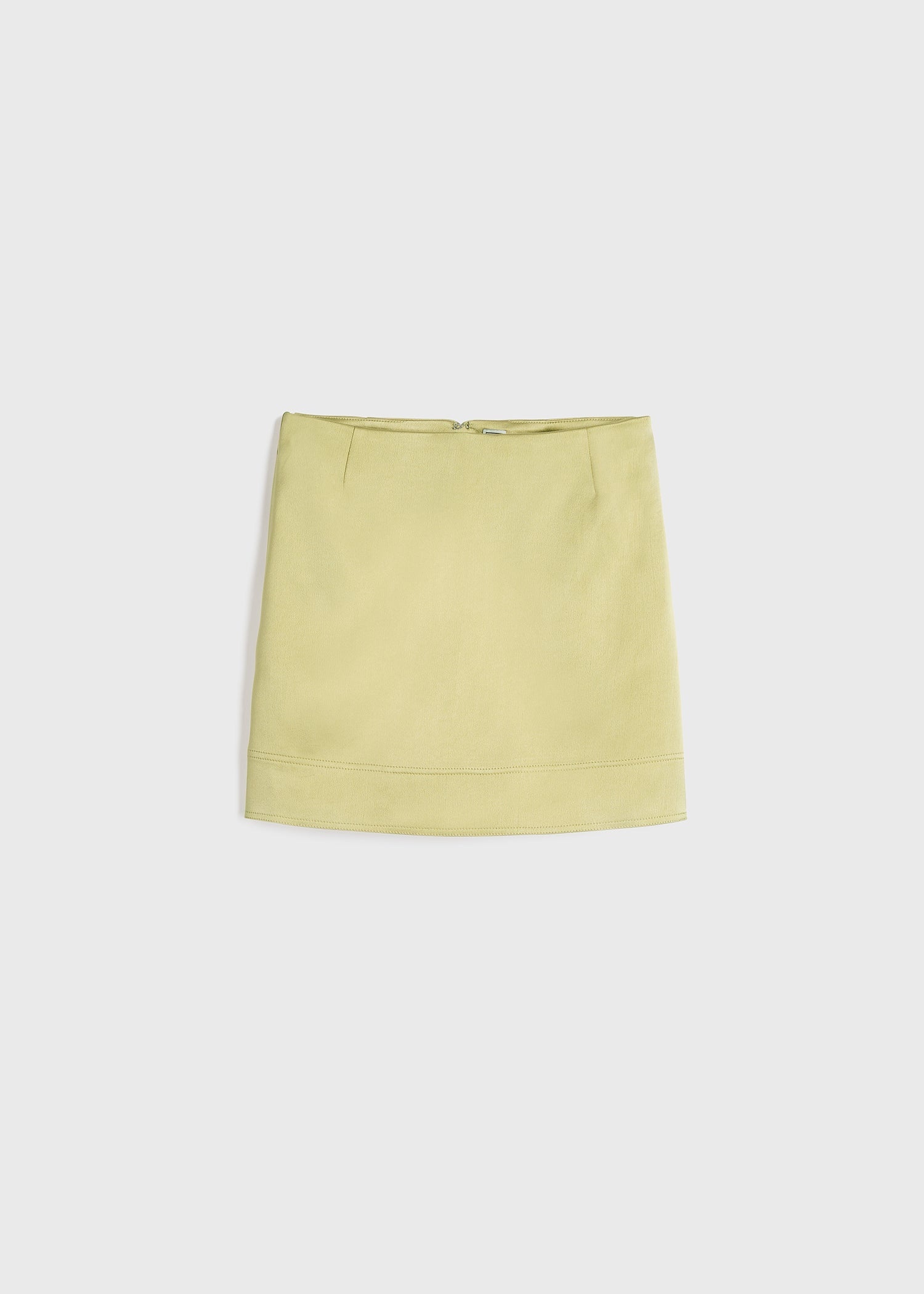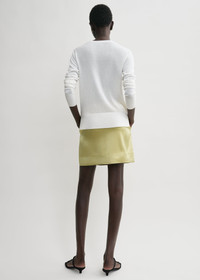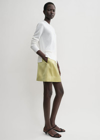 TOTEME mini skirt made from heavyweight, double-bonded satin with a light hay reverse for contrast. It has a subtle A-line silhouette accented with waist darts and a topstitched hemline, then is complete with side slip pockets and a concealed back zipper. Wear it with a shirt or cardigan as part of an urban summer look. Details & Fit - Melon - Side slip pockets - Concealed back zipper - 100% viscose - Dry clean - Style number243-WRB0204-FB0209 - The model is 180cm/511 tall and wears a size 36 - True to size