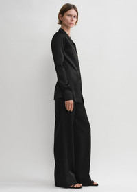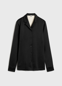 This slim TOTEME shirt is part of a set inspired by elegant sleepwear. It is made from heavyweight, double-bonded satin with a light hay reverse and fastens along the placket with horn-effect buttons. Wear it with matching trousers for a coordinated evening look. Details & Fit - Black - Button front - Light hay reverse - 100% viscose - Dry clean - Style number 243-WRT0339-FB0209 - The model is 176cm/59 tall and wears a size 36 - Slim fit, longline silhouette