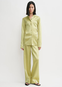 This slim TOTEME shirt is part of a set inspired by elegant sleepwear. It is made from heavyweight, double-bonded satin with a light hay reverse and fastens along the placket with horn-effect buttons. Wear it with matching trousers for a coordinated evening look. Details & Fit - Melon - Button front - Light hay reverse - 100% viscose - Dry clean - Style number 243-WRT0339-FB0209 - The model is 181cm/5'11 tall and wears a size 36 - Slim fit, longline silhouette