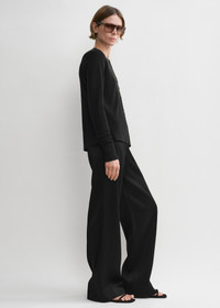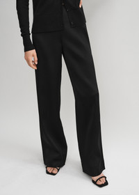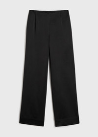 These wide-leg TOTEME trousers are part of a set inspired by elegant sleepwear. They are made from heavyweight, double-bonded satin with a light hay reverse and have a minimalist waistline finished with simple darts and a concealed side zipper. Wear them as part of a refined evening look. Details & Fit - Black - Concealed side zipper - 100% viscose - Dry clean - Style number 243-WRB0194-FB0209 - The model is 176cm/59 tall and wears a size 36 - True to size, wide legs