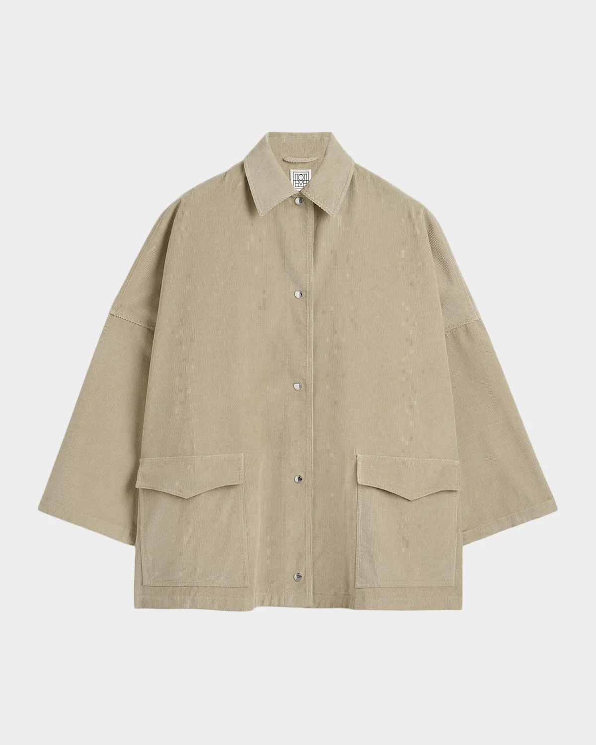 Crafted from corduroy, this shirt jacket from Toteme features an oversized silhouette Point collar; single-breasted front Long sleeves Drop shoulders Hip flap pockets Oversized fit Snap front closure Polyester/wool Dry clean Made in Portugal SIZE & FITModel measurements: 5 & apos;10" tallModel is wearing a US size 4/Small