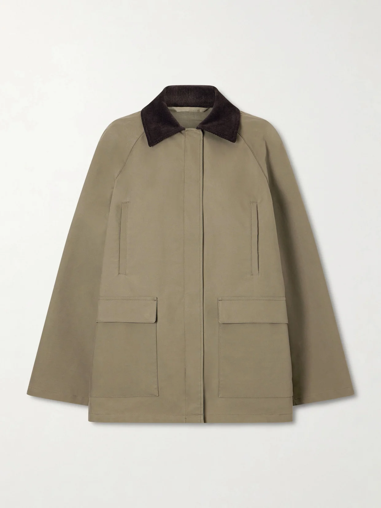 TOTEME presents this take on the field jacket in its own refined style. Made from cotton-gabardine, it has a contrasting corduroy collar and is cut for a relaxed fit with practical front pockets. It's a great choice for countryside escapes and the between seasons.