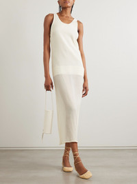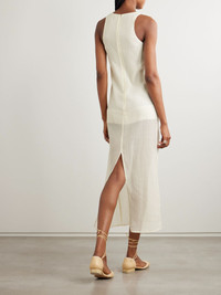 TOTEME's collections are the perfect blend of sophistication and effortlessness. This midi dress is made from lightweight cotton and silk-blend crepon that's lined to the thigh to balance the sheerness. Highlight the classic scooped neckline with a stack of your favorite necklaces. Size & Fit TOTEME follows its own size guide, please refer to below: - DK 32 = UK 4/ US 0/ IT 36 - DK 34 = UK 6/ US 2/ IT 38 - DK 36 = UK 8/ US 4/ IT 40 - DK 38 = UK 10/ US 6/ IT 42 - DK 40 = UK 12/ US 8/ IT 44 - DK 42 = UK 14/ US 10/ IT 46 - Fits true to size, take your normal size - Designed for a close fit - Lightweight, semi-sheer, non-stretchy fabric - Model is 180cm/ 5'11" and is wearing a DK 36 Model measurements: - Bust: 80cm/ 31.5" - Waist: 65cm/ 25.5" - Hip: 89cm/ 35" Details & Care - Ecru cotton and silk-blend - Concealed hook and zip fastening at back - 79% cotton, 21% silk