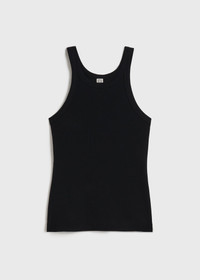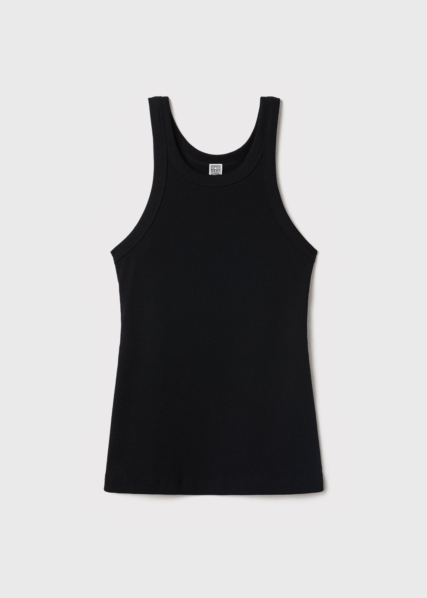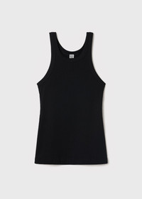 Signature TOTEME tank top made in Portugal from ribbed organic-cotton jersey blended with a hint of elastane for a comfortable, body-hugging fit. It has a high round neck and curved armholes that accentuate the shoulders, then is finished with a straight hem. Tuck it into high-waist trousers to shape the waist. Details & Fit - Black - 95% Organic cotton, 5% elastane - 30°C Machine wash - Style number 211-437-772 - True to size - The model is 177cm/510 tall and wears a size S