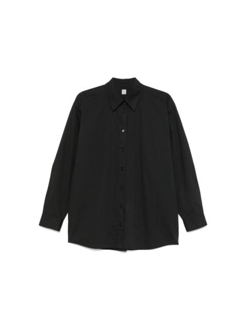 tumbled shirt Highlights - Black - Front button placket - Buttoned cuffs - Inverted pleat - Straight-point collar Imported Composition Organic Cotton 100% SIZE & FIT Model measurements Height 5 ft 11 in(1.8 m) Bust/Chest 32.67 in(83 cm) Hips 36.22 in(92 cm) Waist 24.4 in(62 cm) FittingInformation Designed to be unstructured, offering a loose fit throughout Made from a lightweight non-stretch fabric
