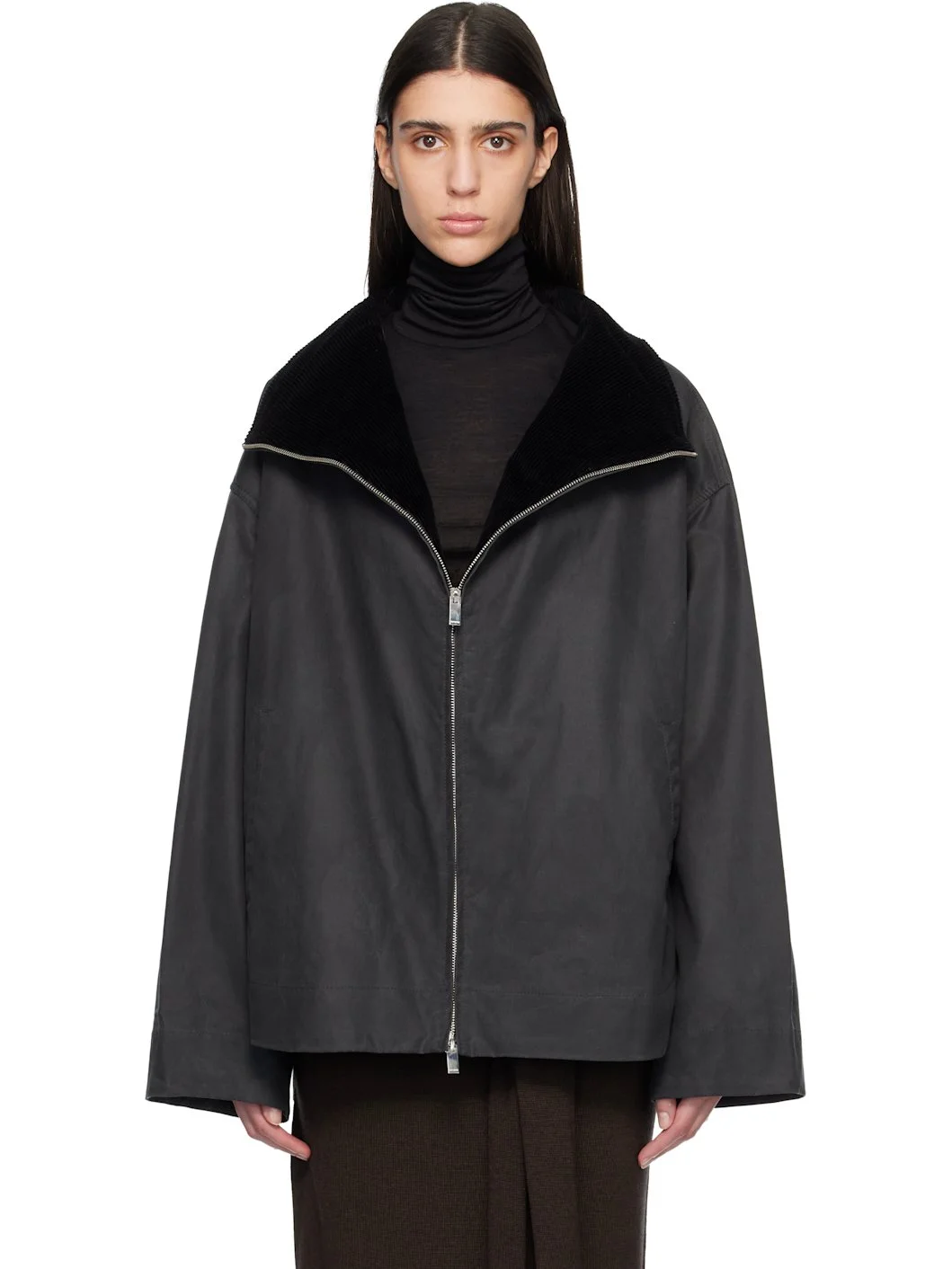 Organic cotton canvas jacket. · Fading throughout · Funnel neck · Two-way zip closure · Welt pockets at waist · Shirttail hem · Dropped shoulders · Partial corduroy lining Supplier color: Washed Black Body: 100% organic cotton. Trim: 100% cotton. Made in Romania 261771F063000