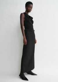 TOTEME top designed with a mesmerizing cowl neckline that drapes organically over the slim body. It is woven from an extra-light and fluid wool blend with a hint of elastane for a body-hugging silhouette secured with a concealed side zipper. Wear it with day-to-evening edits. Details & Fit - Black - 86% virgin wool, 9% polyamide, 5% elastane - Dry clean - Style number 251-WRT4448-FB0330 - The model is 176cm/59 tall and wears a size 36 - True to size, slim fit