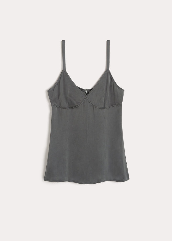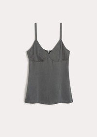 TOTEME cami top nodding to the collection's seductive mood. It's made from fluid satin-back crepe with reinforced underbust seams mimicking the construction of corsets and has front and back darts that result in a natural slim fit. Team it with trousers to go from the office to dinner. Details and fit - Lead - Concealed back zipper - 100% Viscose - Cool hand wash - The model is 177cm/5’9” tall and wears a size 36 - True to size - Style number 234-WRTWTP014-FB0020