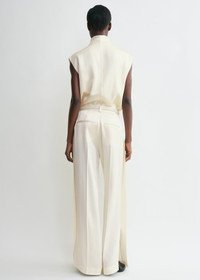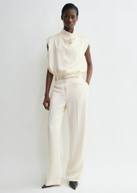 New TOTEME trousers designed to sit at the hips before draping into long legs that slouch over the feet for a directional edge. They are constructed with traditional belt loops, side and back pockets and a zipper fly and feature overlapped cuffs with high side slits. Style them with a blouse for a gallery opening. Details & Fit - Macadamia - Belt loops, side and back pockets - Overlapped side seams, cuff slits - Zipper fly - 56% viscose, 44% acetate - Dry clean - Style number 251-WRB4483-FB0344 - The model is 178cm/510 tall and wears a size 36 - Designed to sit on the hips, consider taking a size up to achieve the intended fit