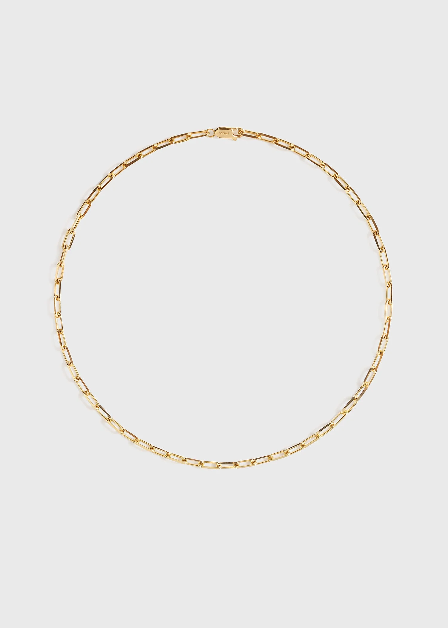 This slim chain necklace is part of TOTEME's debut fine jewelry collection. It's crafted in Arezzo, Italy with fine forzatina links that are meticulously finished with lozenge edges for a sparkling effect. Note how it sits just below the neck, bringing to mind the neckline of a crew-neck T-shirt. Details & Fit - Gold - Lozenge-edged forzatina links - Lobster clasp, stamped logo - 100% Recycled 18kt yellow gold - Care instructions and protective packaging included - Complimentary annual polishing and cleaning for fine jewelry - Style number 241-WJF2156-AC0003 - Length 40cm