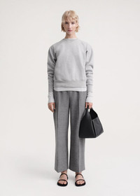 TOTEME's take on the classic sweatshirt – ideal to go from lounging at home to running errands in the city or taking a long flight. It's made in Portugal from mid-weight organic-cotton jersey with a soft and warm reverse, and outlined with a crew neck, dropped shoulders, and ribbed side panels. Pull the cuffs to your forearms to spotlight the monogram embroidered on one side. Details and fit - Grey mélange - Embroidered monogram - 100% Organic cotton - 30°C Machine wash - Style number 233-5068-783 - The model is 178cm/5’10” tall and wears a size XS - True to size