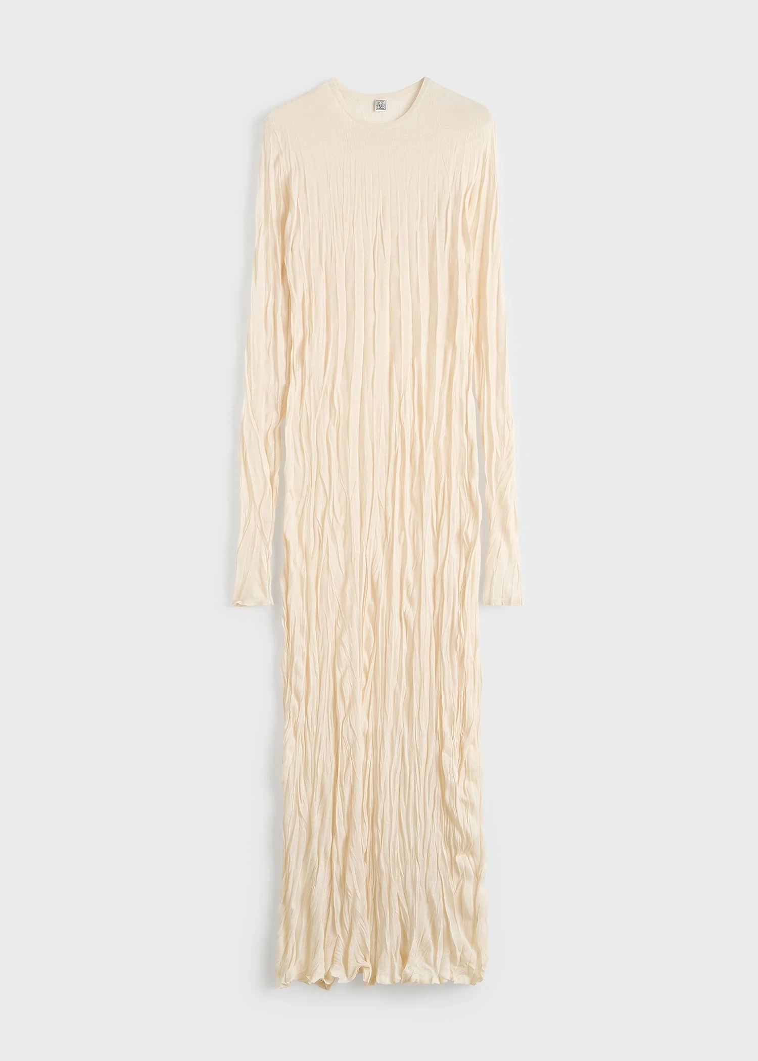 Slim column dress with long sleeves, rounded neckline, and a crinkled cotton hand-feel. The elongated silhouette skims the body with quiet precision, pairing refined minimalism with lived-in texture. Details - Pale apricot - Slightly sheer - 75% viscose, 25% polyester - Dry cleaning or cool hand wash recommended - Style number 262-WRD0326-YA0244 Fit information - The model is 180cm/5’11” tall and wears a size S - Slim fit Origin & Certificates - Made in China - Manufacturer: Tongxiang Chongfu Orient Weaving Co., Ltd - Material knit in China; dyed in China