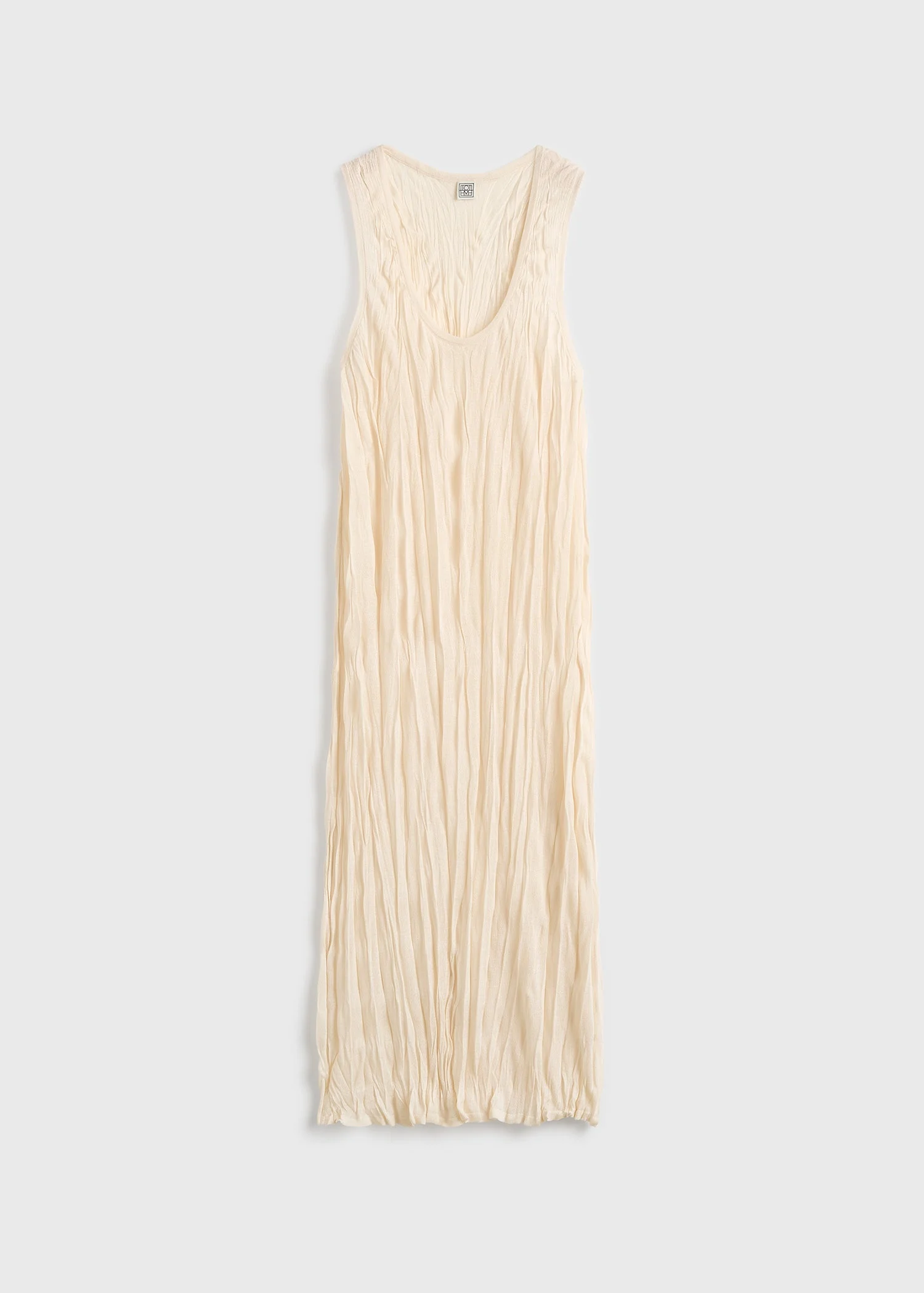 Tank dress cut from fluid crinkled viscose with a soft hand-feel. Designed with wide straps and a low scoop neckline, it has a slim fit that falls above the knee. Details - Pale apricot - Slightly sheer - 75% viscose, 25% polyester - Dry cleaning or cool hand wash recommended - Style number 262-WRD0343-YA0244 Fit information - The model is 180cm/5’11” tall and wears a size S - Slim fit Origin & Certificates - Made in China - Manufacturer: Tongxiang Chongfu Orient Weaving Co., Ltd - Material knit in China; dyed in China