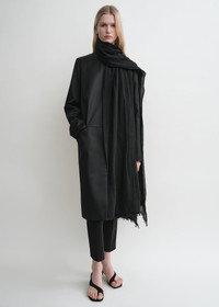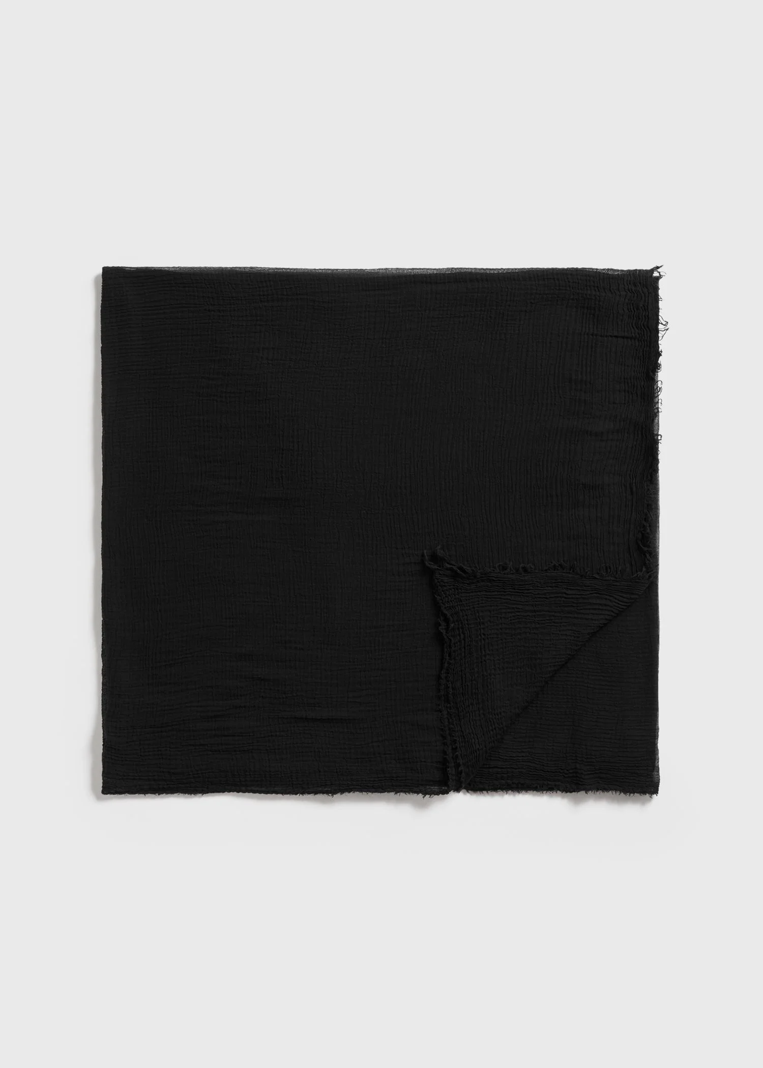 TOTEME scarf woven from feather-light organic-cotton gauze with a soft crinkled finish and frayed edges. Throw it on over the shoulders as part of an evening summer edit. Details & Fit - Black - 100% cotton organic - Cool hand wash - Style number 252-WSC0103-FB0405 - Length 250cm/98 Width 150cm/59