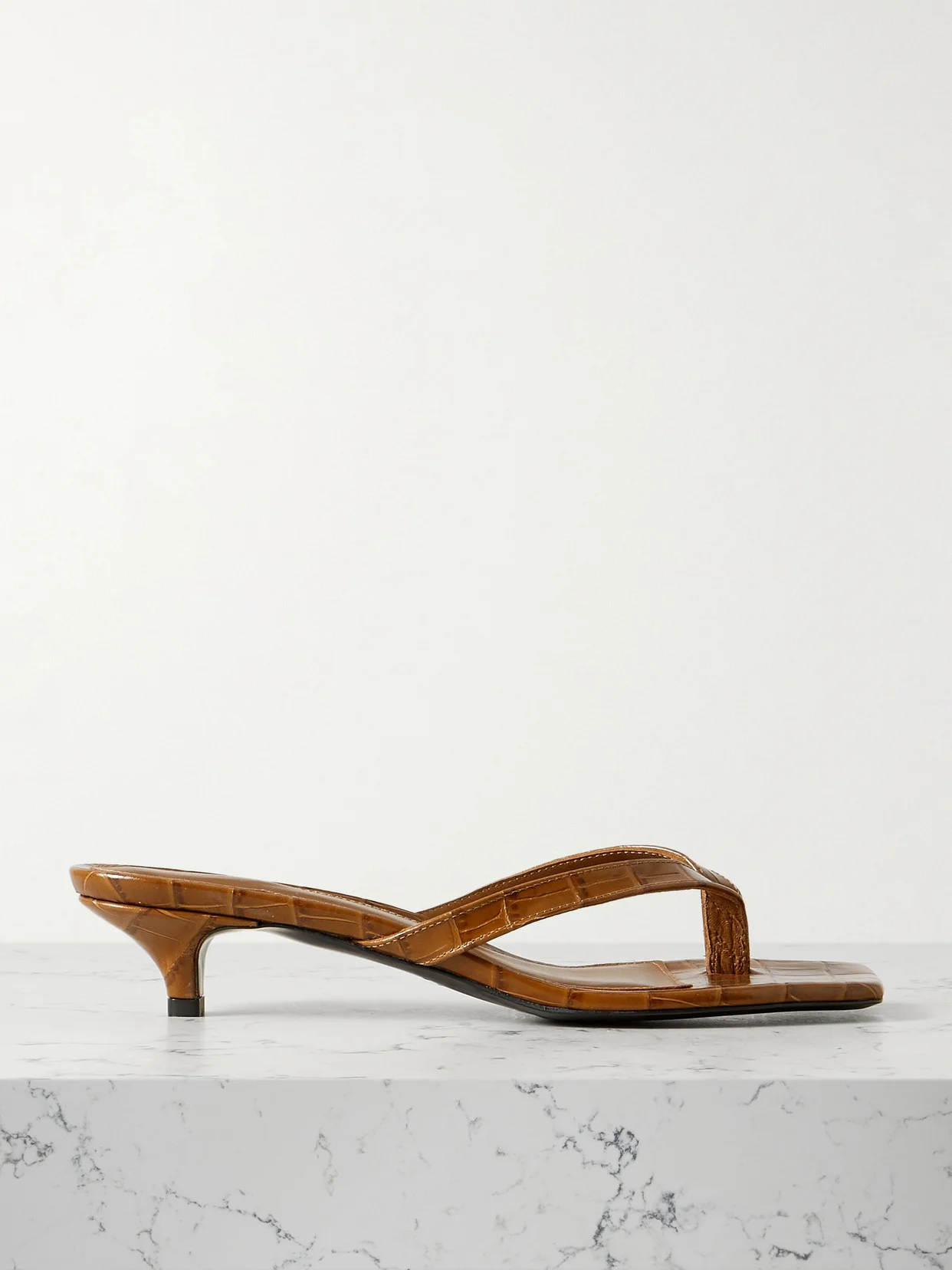 EXCLUSIVE AT NET-A-PORTER. TOTEME's elevated flip flops are effortlessly chic. They're made from croc-effect leather in a minimal shape and have sleek squared toes and low kitten heels.