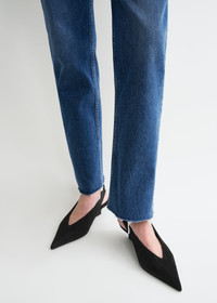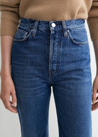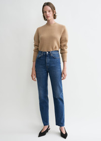 TOTEME jeans cut to a classic straight silhouette with slim thighs and cropped legs finished with raw edges for texture. They're made in Italy from rigid organic-cotton denim that will mold to fit you perfectly over time and feature a mid-to-high waistline fastening with a concealed button fly. Wear them everyday with flats or kitten heels. Details & Fit - Mid blue - Button fly, silver-tone hardware - Belt loops, five pockets - Monogram leather patch - 100% Organic cotton - 30°C Machine wash - Style number 221-235-747 - Mid-to-high waist, cropped straight legs with slim thighs - The model is 178cm/510 tall and wears a size 26/34 - True to size